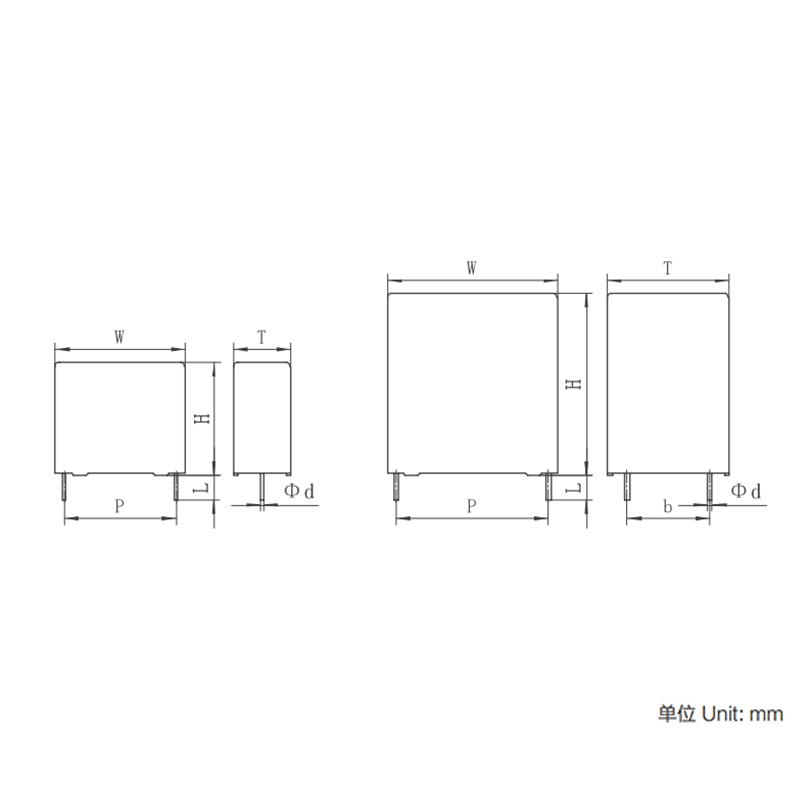 | CN (μF) | W (mm) | H (mm | T (mm) | P (mm) | B (mm) | D (mm) | Ls (NH) | dV/dt (V/kami) | ESR @100kHz (mΩ) | SAYA maks (A) | |